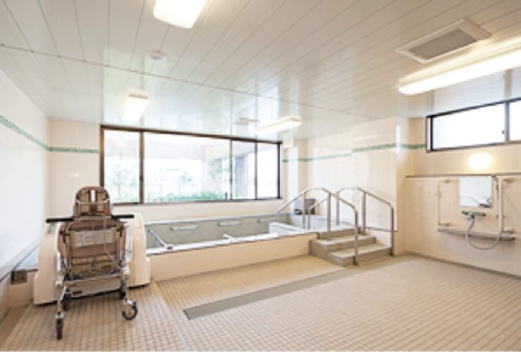 寝たきりや車椅子の方にも入浴をお楽しみいただけるように、中間浴槽(車椅子タイプ)、機械浴槽(ストレッチャータイプ)など最新の機器を導入。