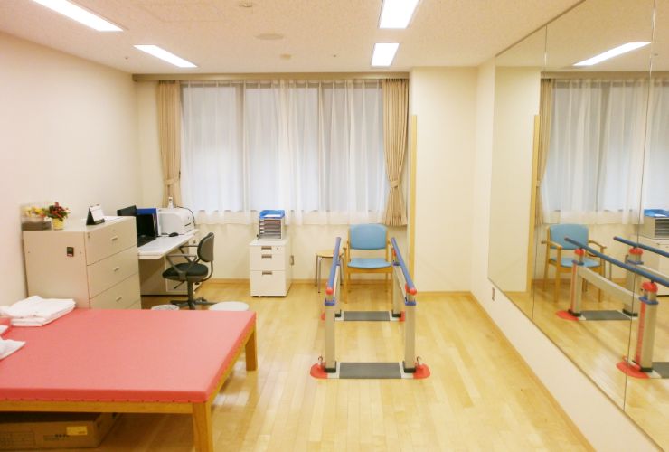 総生会ロイヤルホームの機能訓練室には、常勤の理学療法士、言語聴覚士が常駐、また総生会の2つの病院のリハビリテーション室と連携し、理学療法士、作業療法士、言語聴覚士が機能訓練をトータルにサポートしています。