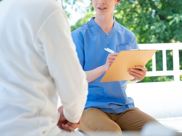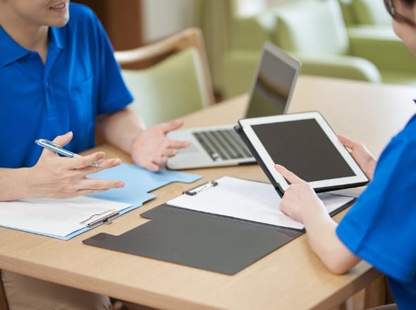 当ホームのスタッフがご入居予定者様のもとに伺い、ご家族やホームヘルパーの方から日常生活の動作や介護、健康状態などについてお話を聞きします。